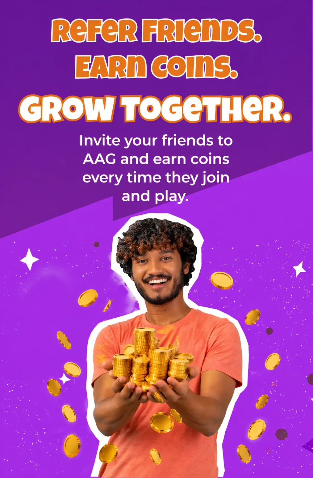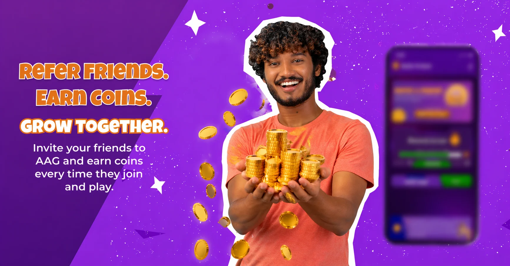 Pro Tip: Bring 25+ active players and you qualify for the AAGVEER program — where referrals earn you real commission income, not just coins.
